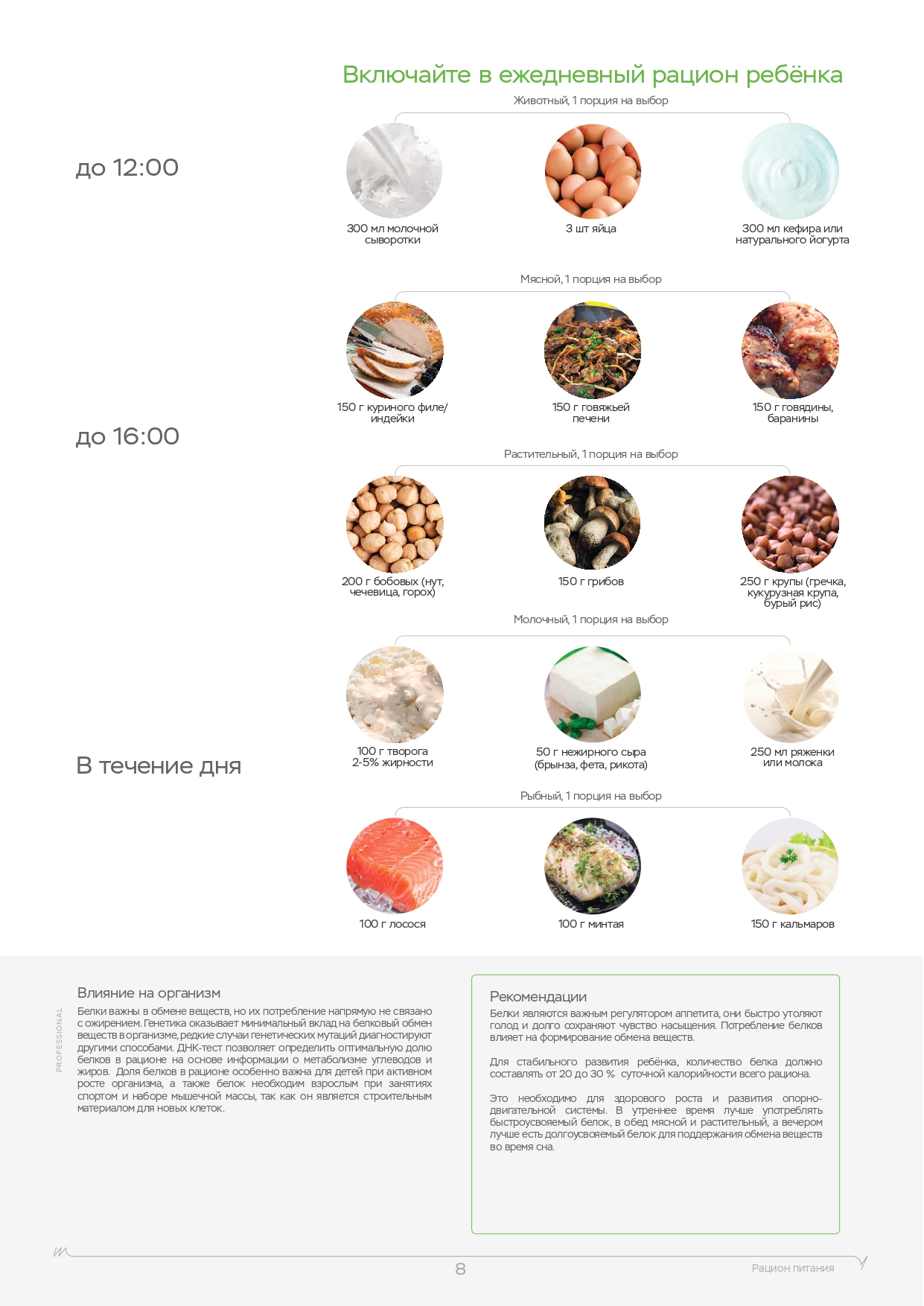 Помните, что помимо физических нагрузок, большую роль играет питание. Вы также можете пройти ДНК-тест на диету, который покажет, каких веществ не хватает в организме, какие организм усваивает лучше, а какие хуже и многое другое.