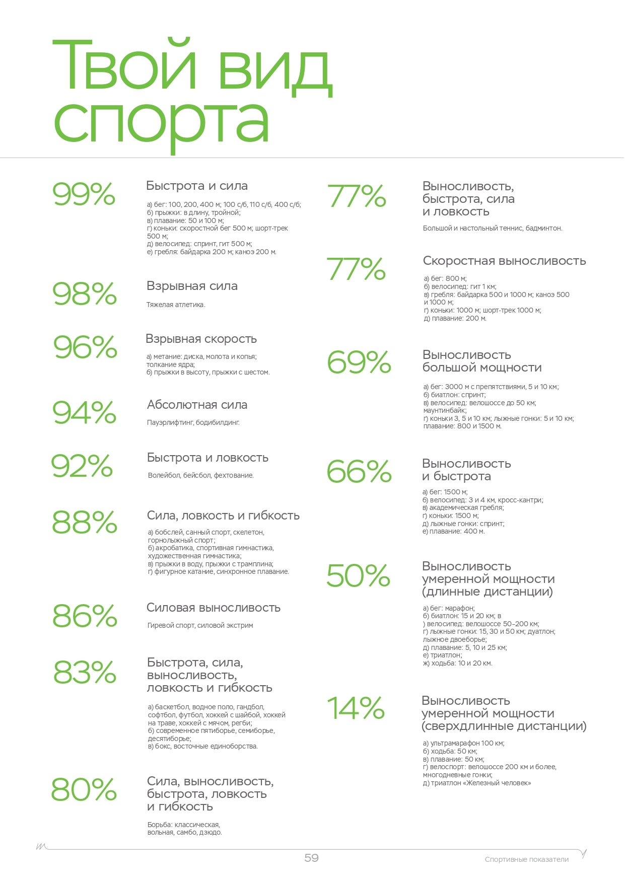 Этот генетический анализ показывает, к каким видам спорта и физическим нагрузкам ребенок предрасположен генетически. Можно заниматься любыми видами спорта, но в определенных видах ребенок достигнет высоких результатов быстрее других детей и с меньшими усилиями. Поэтому мы рекомендуем пройти наш ДНК-тест спорт для ребенка в Усть-Илимске.